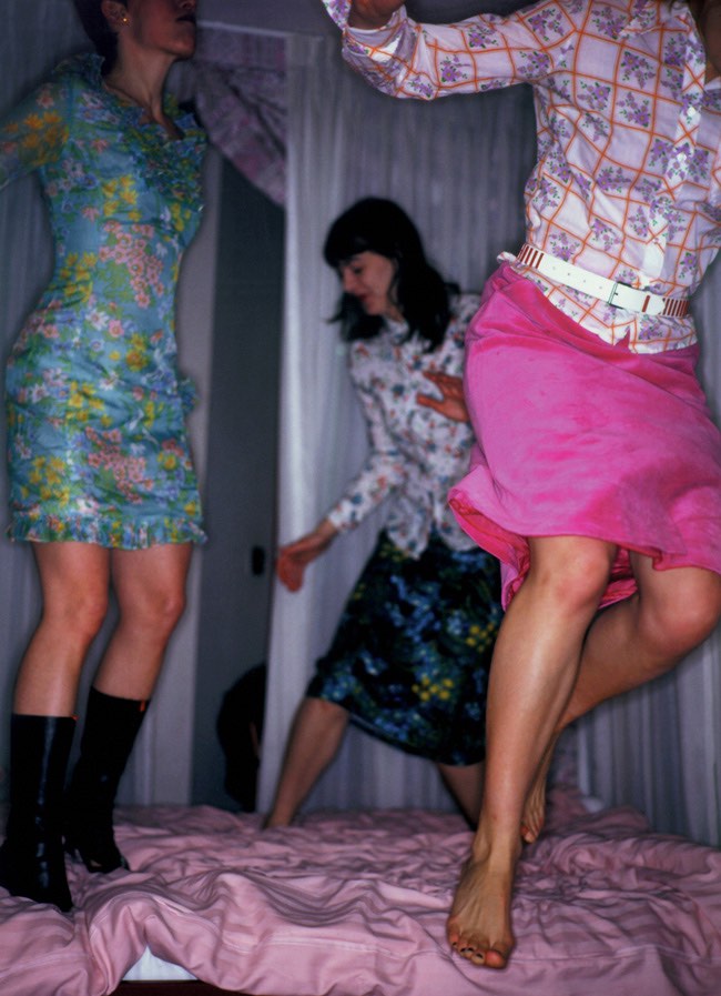 Begin 2000 organiseert Lady Aïda haar eerste ‘Rebelbass’ in 013, Tilburg. The Grand Lady of Techno heeft hiervoor Chicks on Speed uit München geboekt. Ik ben gevraagd voor een fotoshoot van de drie voormalige kunstacademiestudenten, die ik vaker voor mijn lens heb gehad. Wanneer ze dus voorstellen dit in een van hun hotelkamers te doen, verblik noch verbloos ik.