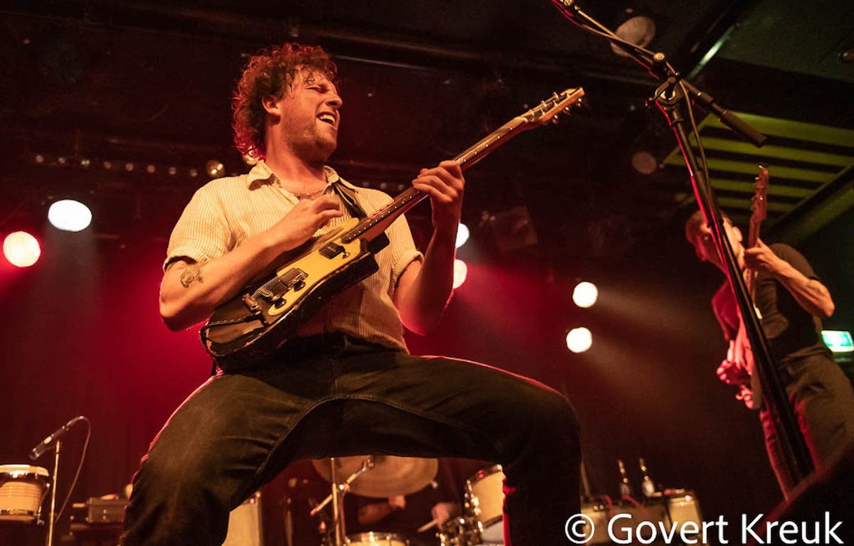 Ondertussen is frontman Jeroen Reek met een trombone op het podium verschenen. Later leer ik dat hij dit instrument sinds zijn elfde speelt, maar vooralsnog moet ik het doen met de mededeling dat het volgende nummer een cover is van Guus Meeuwis. Tegen beter weten in zet ik me schrap en het valt uiteraard allesbehalve tegen. Meeuwis mocht willen dat hij nummers als Cyka Blyat schreef! De tekst beklijft nog niet helemaal, want op het podium ligt een A4’tje als geheugensteun, maar muzikaal en qua tempo zit het helemaal goed. Het is alsof een herfststorm Tram 4 moet halen en de trombone blijkt niet alleen voor de show. Het nummer culmineert van semi-ska naar een jazzy outro, geholpen door het vertragende basspel door Justin Boer en daarmee rollen we vanzelf in de laatste van de vijf nieuwe nummers, Pusherman, dat niets te maken heeft met de hit van soul- en funk legende Curtis Mayfield.
