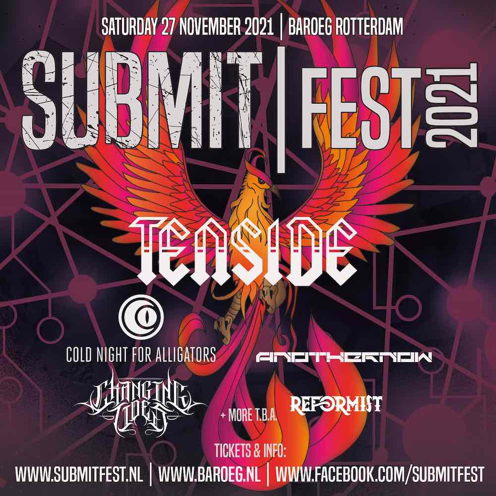 Ben je er dan? Nou, eventjes wel. Maar op 27 November organiseert Baroeg in Rotterdam een volgend vlammend festival: Submit Fest 2021. Het wordt de vierde editie van het festival dat je kennis wil laten maken met de beste nieuwe metal acts van regionale, nationale en internationale bodem. Op het programma staan tot nu toe – er volgen nog namen – Tenside (DE, modern metal/metalcore), Cold Night For Alligators (DK, progressive metalcore), Another Now (NL, progressive metalcore), Changing Tides (NL, metalcore/deathcore) en Reformist (NL, progressieve metalcore).