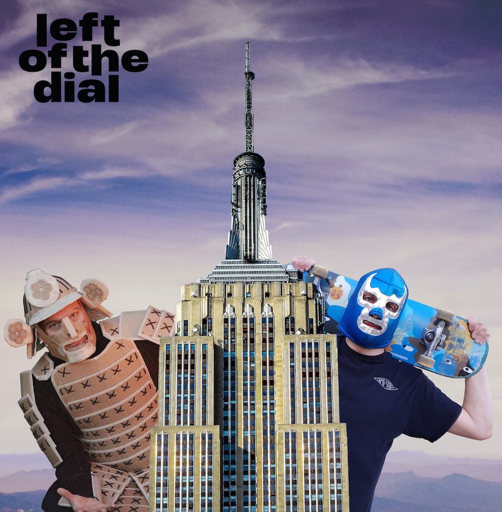 Je kunt moeilijk 72 uur met rennende worstelaars vullen, dus hebben we ook clips van alle Left of the Dial-bands verzameld. In eentje speelde een skydancer een belangrijke rol. Je weet wel, zo’n 4 meter hoog mannetje op een ventilator die met z’n armen zwaait. Daar werden we zo vrolijk van dat we er meteen een paar hebben besteld om op het festival neer te zetten. En die hebben uiteraard ook een worstelmasker gegeven.