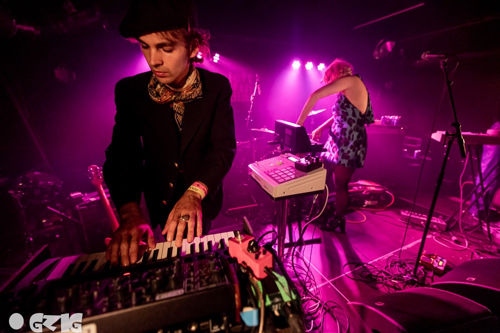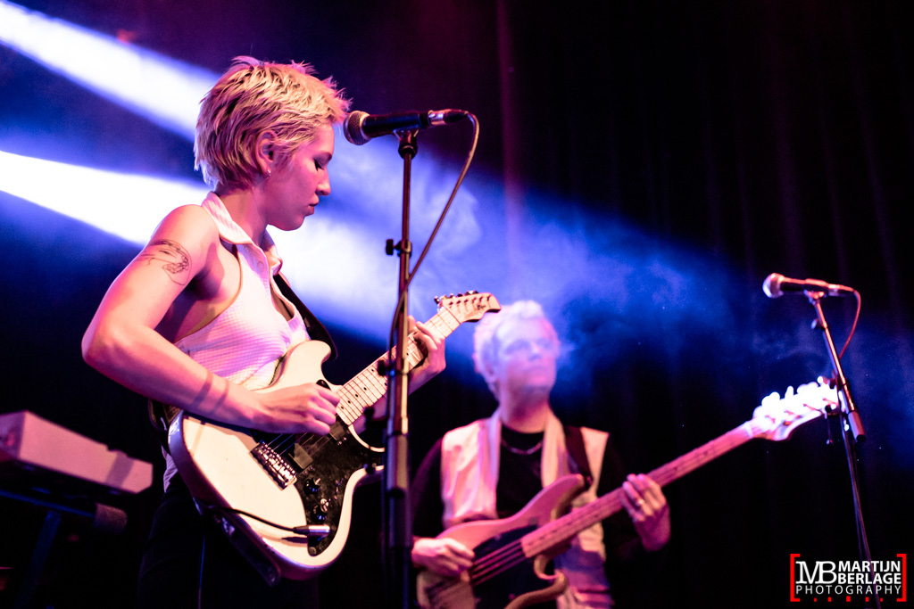 Ik (Mats) heb mij kapot gedanst op de new wave techno van Baby’s Berserk. Dit trio bewapend met drummachines en synthesizers transporteerde je tijdens Left of the Dial naar een 90’s underground rave. Knotsgekke frontwoman Lieselot Elzinga doet me gelijk denken aan een jonge Madonna terwijl Mano Hollestelle gekleed is in een pak uit de jaren 70. De knallende technobeats worden aangevuld met veel percussie en basgitaar en vormen swingende danshits. De frontwoman zingt samen met Puggy Beales herhalende hypnotiserende teksten, eerst duister van aard en later komisch. Samen klinken ze als het refrein van Hollaback Girl. Lieselot Elzinga’s aanstekelijke gedans zorgt voor een blij en enthousiast publiek, maar ook een los snoertje bij de synthesizer. Maar terwijl de band dit met elkaar oplost, knalt de drummachine, en daarmee de show, gewoon door. De buitengewoon dansbare new wave van Baby’s Berserk was voor mij het absolute hoogtepunt van dag één van Left of the Dial!