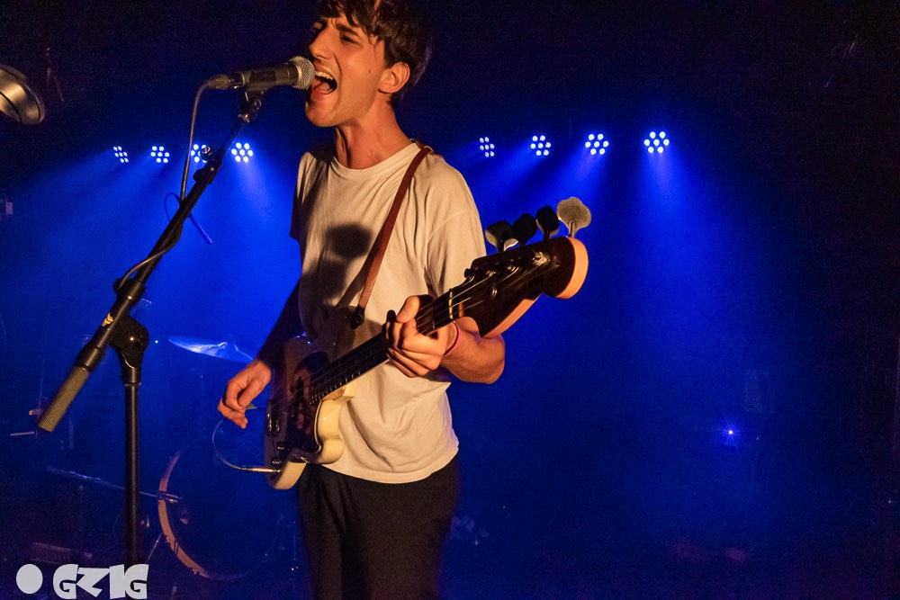 Even lijkt het, ondanks dat we er allemaal zo’n zin hebben dat we wat trillerig aanschuiven voor Global Charming, toch nog een valse start te krijgen. ‘We gaan van het podium af en beginnen straks opnieuw. Nothing is working’, roept de band onderwijl geïrriteerd wijzend naar de monitors op het podium. Wat zonde voor de Amsterdamse band die voor een vol Worm graag uit de startblokken wil vliegen en hun hoekige Mondriaan-pop etaleren. Wat later proberen ze het opnieuw, starten met een langgerekte instrumentale oefenruimte-jam om alles te checken, en komt hun optreden op dit showcase festival begrijpelijk wat stroefjes op gang.