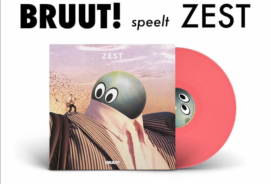 Terwijl buiten de koperen ploert zich deze mooie lentedag tracht te doen gelden, komt zijn gouden gloed gefilterd binnen door de bamboerolgordijnen van Tuinhuis, een zaal van Tolhuistuin. Daar maken vier in strakke pakken gestoken mannen de sfeer behoorlijk broeieriger. Het Amsterdamse kwartet BRUUT! laat horen hoe hun nieuwe album Zest klinkt. Op een laag podium, gehuld in blauw en rood licht trapt de band zijn tour af voor een select gezelschap genodigden. MuziScene is ook uitgenodigd en geholpen door mijn zoontje van negen doe ik verslag.