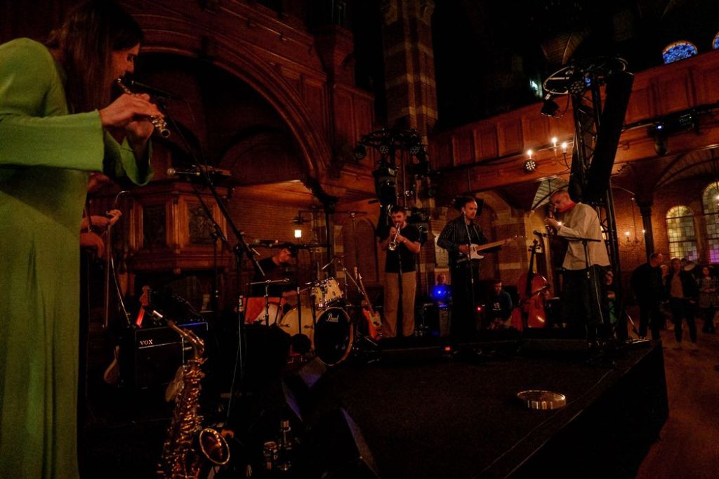 Op papier had die klapper Caroline kunnen zijn. Of misschien ook moeten zijn. De Britse band is uitverkoren tot artist in residence en kreeg op MoMo alle ruimte om te doen waar zijn zich mee onderscheiden: de ruimte waar je muziek maakt gebruiken voor de sound en de sfeer. Drie keer klommen ze op het podium: in de statige kerk Arminius, de grote zaal van Theater Rotterdam en tot slot op een bijna zomerse zonnige avond in de tuin bij Boijmans. En drie keer speelde de achtkoppige band iets anders. In Arminius werd het nummer BRJ al improviserend uitgesponnen tot een uur durend werk, terwijl de bandleden tussendoor van instrumenten wisselen. Klarinet wordt dwarsfluit wordt saxofoon, basgitaar wordt trompet en gitaar wordt bijvoorbeeld verruild voor cello. Ondertussen krassen violen en roffelt de drummer hier en daar een jazzy break. Het voelt sacraal aan, en dus ook als heiligschennis om tussendoor weg te lopen. Experimentele muziek die ook niet bij iedereen in de smaak valt en bij sommigen een ‘kleren van de keizer-gevoel’ oproept. Achter de bar slaat de verbazing zo toe, dat voor de grap soepele dance moves worden ingezet op de atonale én a-ritmische geluidserupties. In Theater Rotterdam spelen de Britten werk van hun debuutalbum waarin experiment en postrock elementen samenkomen waarbij ze ook putten uit de rijke Britse muzikale tradities. Voor de liefhebbers misschien de aardigste opvoering is de mix van beide voorgaande concerten wat betreft experiment en structuur in de tuin van Boijmans. In de buitenlucht gaat het gepiep en gekraak dat de acht uit hun instrumenten persen samen met de vogelgeluiden uit de speakers naadloos op in de stadsnatuur. Een reiger vliegt langs en schreeuwt een protest, een nijlgans graast rustig door op het gras. Het gevoel dat na drie uitvoeringen achterblijft is dat de ontmoeting met de jonge Britse band vooral interessant was om mee te maken, maar niet de vervoering bracht waar we op hadden gehoopt.