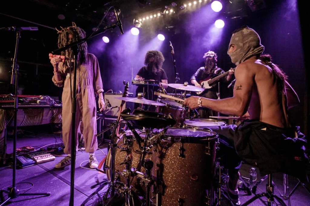 Een ontdekking kan Snapped Ankles in geen geval zijn voor de muziekliefhebber. De eco-muzikanten timmeren al wat jaren aan de weg met hun tegendraadse elektronische artrock. Op de donderdagavond sluiten ze in Rotown een eerste festivaldag af. Pompende synths, rollende baslijnen, bijzondere zanglijnen. Rythm Is Our Business heet een van de meer recente tracks en die drukt precies uit waar Snapped Ankles in uitmunt: het is raar maar heel erg dansbaar. Er wordt dan ook al snel uitzinnig gedanst voor het podium. En dan die uitdossing van het gezelschap: allemaal voorzien van een hoofddeksel dat eruit ziet alsof ze door mos en schimmels zijn begroeid. Hier en daar voorzien van een hertengewei. Zelfs percussie-instrumenten zien er uit als takken van een boom. En de band vertelt ons voortdurend dat we zuinig moeten zijn op het groen in de wereld. Bijzonder onderhoudend, mede dankzij de dienbladen met shotjes die al spelende door de band worden opgehaald, of aangereikt krijgen door enthousiaste fans.