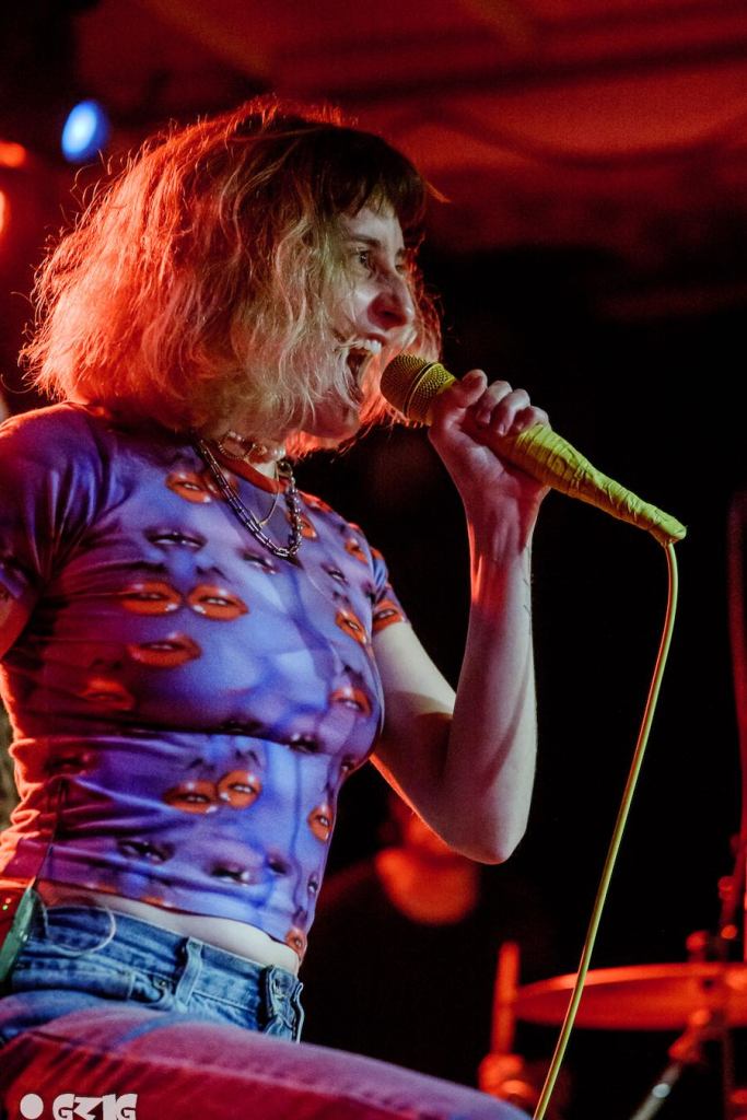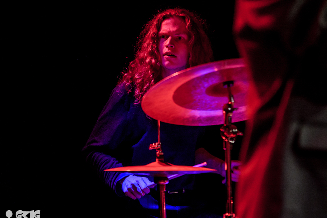 Hoe leuk de hoofdmaaltijd ook was, voor de Rotterdamse muziekscene staat deze avond vooral in het teken van het debuut van weer een beloftevolle loot aan de toch al rijke postpunk-boom van de stad: Library Card. Toegegeven, het lijkt heel erg op Britse acts die succes boeken met een stevig tapijt muziek waarover teksten worden uitgesproken. Ja, je zou zelfs kunnen aanvoeren dat Lot van Teylingen fysiek wel wat weg heeft van Sinead O’Brien. Maar wetende dat het viertal vanavond voor het eerst op het podium staat, dan is wat zij nu al laten zien en horen niets minder dan verbluffend sterk.