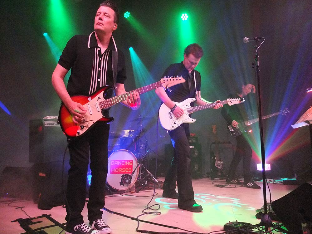 Die herinnering dringt zich op als ik bij oefenruimte De Frikandel in een busje stap om met Dancing Horses naar Amersfoort af te reizen. In het prachtig geoutilleerde poppodium Fluor – gevestigd in wat ooit de fabriekspanden waren van tandpastaproducent Prodent – gaan zij een avondje de klok ferm terugdraaien, naar de jaren tachtig wel te verstaan. Dancing Horses, ja wel, vernoemd naar de klassieker van Echo and the Bunnymen Bring On The Dancing Horses, vult met speels gemak een lange avond met enkel en alleen wave-liedjes uit die periode. Een echte coverband.