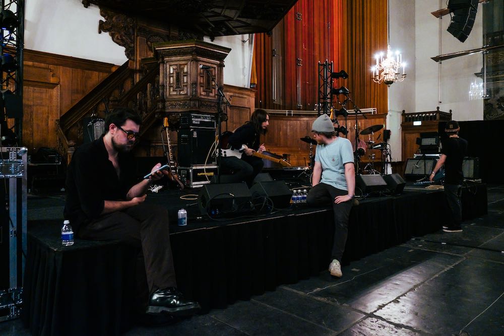 Zeven weken op tour betekent dan wel weer dat het viertal plus tourmanager en geluidsman ondertussen expert is geworden in het opbouwen en ze lijken allemaal op elkaar ingespeeld. Tourmanager en geluidsman Lawrence hoeft enkel een bandlid één keer bij naam te noemen en ze staan klaar op het podium. Tussen de soundcheck en het opbouwen van de merchtafel door, bezoeken Merrick en gitarist Craig Whittle het om de hoek gelegen Filmhuis Den Haag voor een Q&A sessie. Tijdens deze 20 minuten durende talkshow vertellen Merrick en Whittle over hoe de band begon, waar hun geluid vandaan komt en dat dit hun eerste tour als band is.