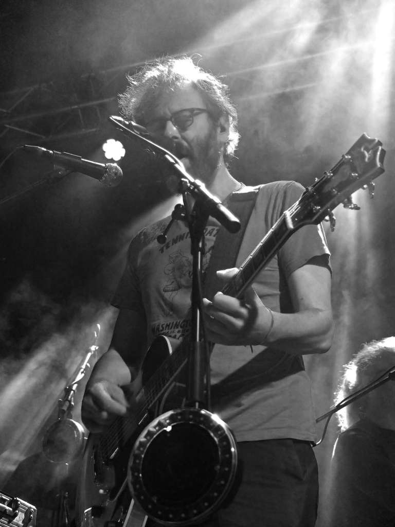 Zo krijgt elk instrument deze avond ook wel zijn kans om te shinen. Theresa Loibl bijvoorbeeld met haar spel op een prachtig klinkend harmonium maar met name als zij haar basklarinet bespeelt, een instrument met een prachtig timbre. Die details in de sound van The Notwist maakt het concert een feest om aan te horen. En dan worstelt Micha Acher zich ook nog in een sousafoon, zet zijn broer nog een plaatje op om er mee te scratchen en wordt het echt onnavolgbaar wat er allemaal op het podium gebeurt. Het is prachtig, zonder dat het te gepolijst wordt. Het harmonium hangt in de toon, en er is altijd die nasale en soms bijna valse zangstem van Markus Acher. Die rafelrandjes maken het kwetsbaar, menselijk, van vlees en bloed.