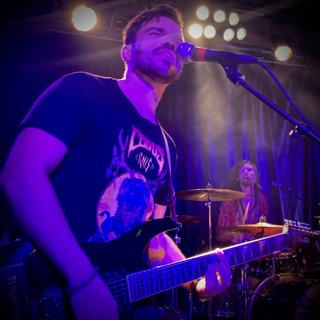 Het voorprogramma is in handen van Cervus een zeskoppig stoner-rockmonster met een jaren-70 hardrockgeluid. Met drie gitaristen waarvan een zich soms bovendien uitleeft op een Nord 5 synthesizer is het niet moeilijk voor te stellen dat met gemak een muur van geluid wordt opgetrokken waartegen het gemakkelijk leunen is. En dat is precies wat het publiek doet, want ondanks herhaalde verzoeken van zanger Tom van der Linden komt het niet of nauwelijks in beweging. En dat moet aan het tijdstip liggen, zondagmiddag 16.00 uur is blijkbaar te vroeg voor een moshpit, terwijl sommige nummers zich daar toch prima voor lenen. Goed, misschien moet Cervus, dat vooral nummers speelt van de in 2021 uitgekomen ep Ignis zelf ook even op stoom komen, maar bij het Deep Purple-achtige The Witch’s Wail, is dat toch zeker het geval. Het blijkt de opmaat naar slotnummer Eternal Shadow waarop een enkeling overigens, zij het kort, wel degelijk losgaat. El Fatso krijgt de zaal dus warm overgedragen.