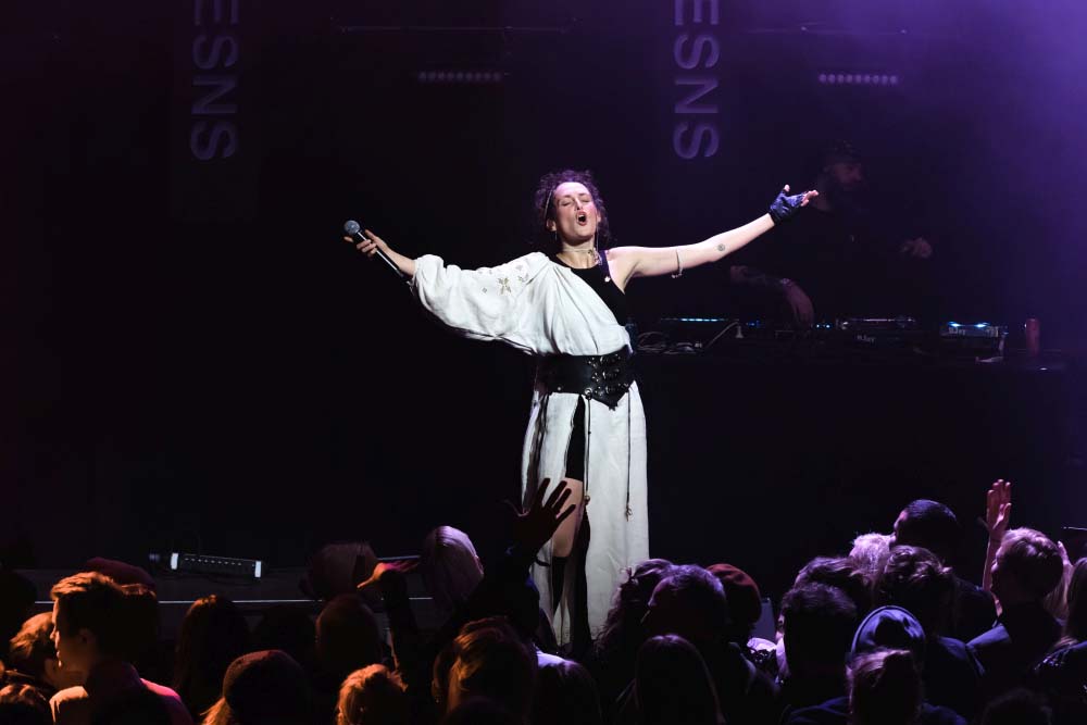 Terug naar het Grand Theatre. Prachtig licht bij de show van MME-winnares July Jones. De electroqueen uit Slovenië zet een goeie show neer. Muzikaal razend scherpe hooks en ongefilterde teksten over relaties, queerness en mentale gezondheid. Jones heeft oog voor de camera’s. Dit is fijn schieten als fotograaf.