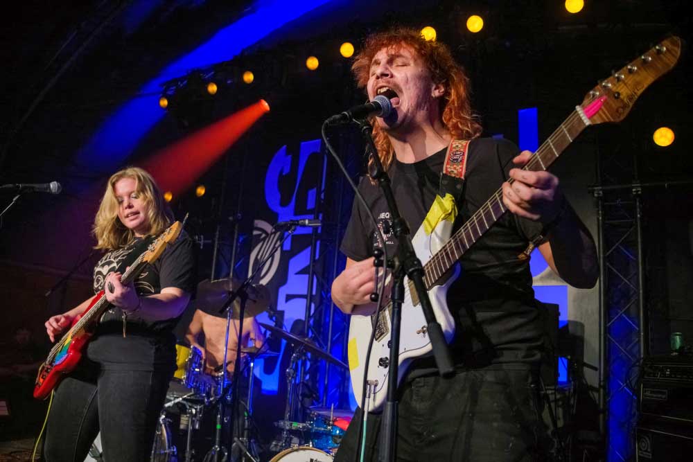 De Cloudsurfers razen over het podium en zetten de Blauwe Hemel op zijn kop met hun gruizige garagerock. Wat een overgave. Uptempo punk á la Oh Sees en Ty Segall met twee drummers!