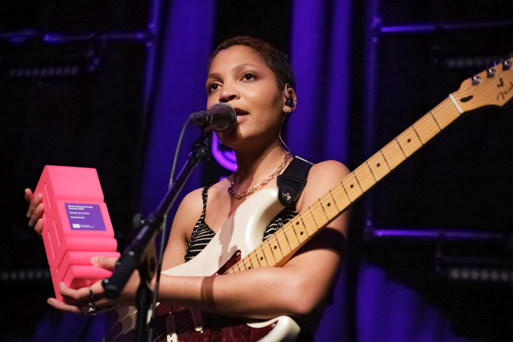 Gelukkig is er meer licht bij Sans Soucis. Met haar mix van r&b, electro en Gongolese rumba sleepte ze eerder op de avond de belangrijkste MME-award in de wacht. Vol trots toont ze haar prijs aan het toegestroomde publiek in het Grand Theatre.