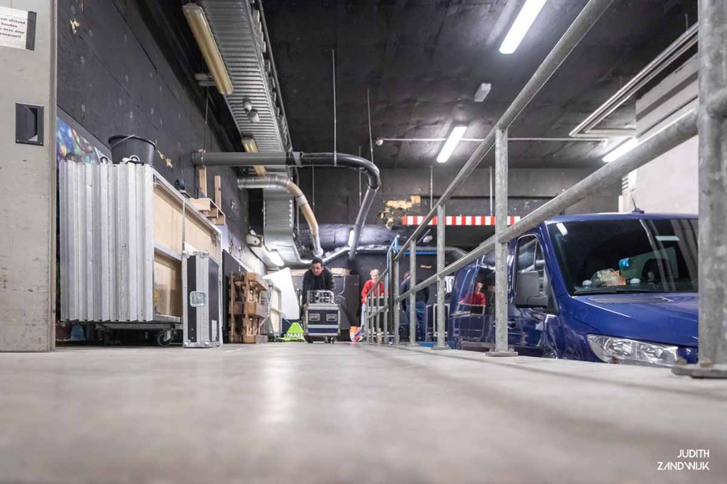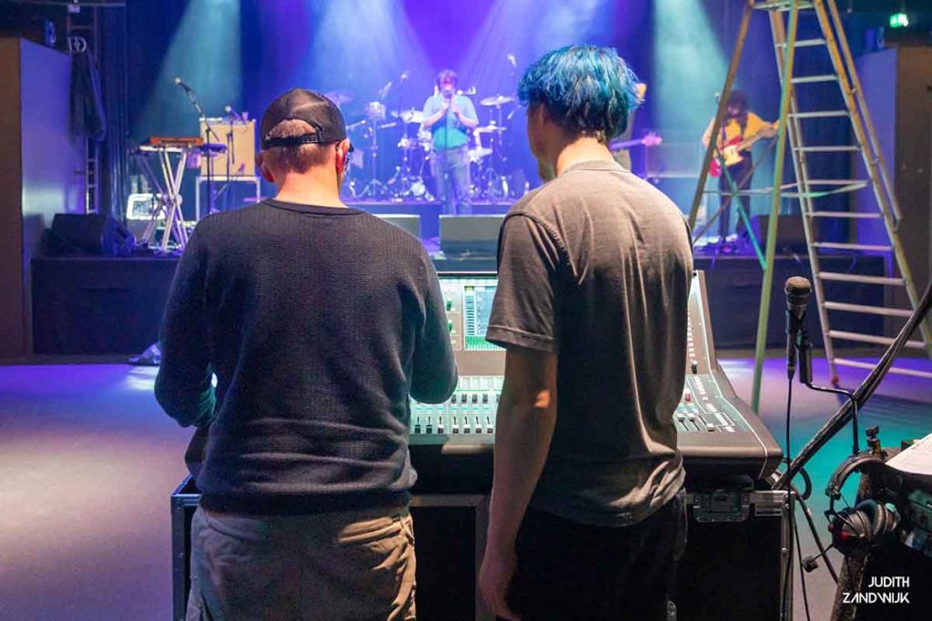 In de kleine zaal zijn de licht- en geluidstechnici van Paard druk bezig. Remko Schouten (IJland studio) komt hen vergezellen en samen met de bands zorgen ze dat alles technisch in orde is voor het optreden van de avond.