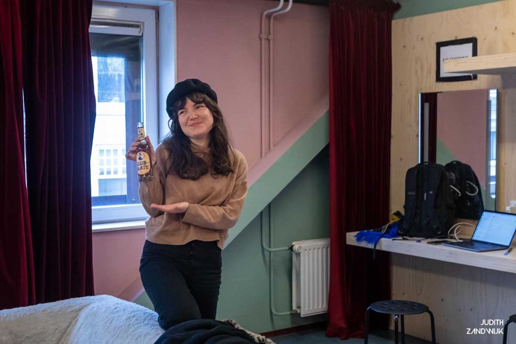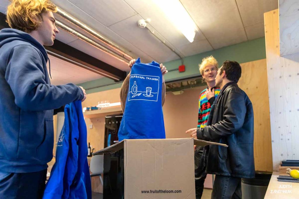 Na wat gesteggel in de kleedkamer worden de sweaters voor de merchandise opgerold en met een stukje tape vastgezet. Helaas is er geen vinyl meer om te verkopen want debuutplaat Big Love Blanket (uitgekomen in november 2022) is op het moment dat de band in Paard speelt uitverkocht.
