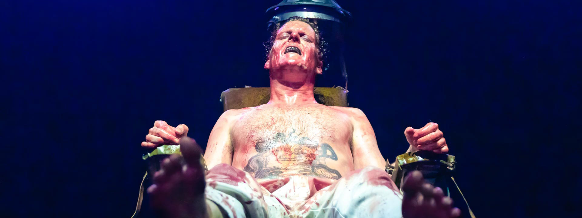 Nóg een wereldpremière op het conto van Rewire: Alto Arc. De groep brengt hun duivelse dromen visueel, theatraal en muzikaal tot leven. De cast bestaat uit onder meer Deafheaven’s frontman George Clarke, producer Danny L Harle, Tayler Tryon van Hundred Waters en make-up-artiest Isamaya Ffrench. Clarke wordt met liters bloed overgoten, in doeken gewikkeld en zijn lijdensweg – het is tenslotte Pasen – wordt uiteindelijk beëindigd in een oude elektrische stoel.
