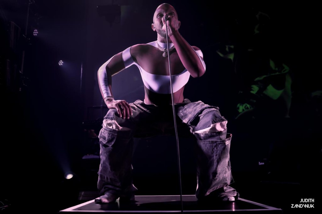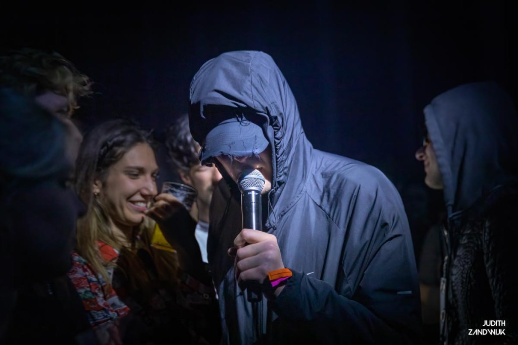 In de Kleine Zaal van Paard kwam producer en songwriter Rainy Miller op in een dikke Nike-winterjas en getooid met pet én capuchon. Zijn introspectieve vocalen, gehijg en gekreun zijn verwrongen en getransformeerd met treurige Auto-Tune-effecten. In no time begeeft hij zich tussen het publiek, klautert op de trap en kronkelt hij over de vloer. Daar moet het gebeurd zijn, dat hij met de microfoon zijn mond tot bloedens toe kapot stootte. Het leek hem niet te deren.