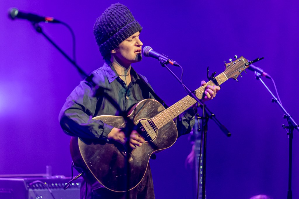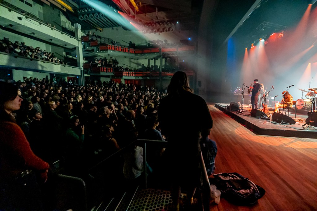 The Last Dinner Party is ruim voor tijd door zijn setlist heen, maar dat is in dit geval helemaal niet erg, want we moeten door naar headliner Big Thief. Een gigantische rij tot om de hoek van de schouwburg laat zien dat meer mensen dit hebben bedacht. Ook binnen zijn de trappen van boven tot beneden bezet door wachtenden die niet weten dat dan de benedenzaal, het sta-gedeelte, al volledig is gevuld en dat zij, zodra het lintje voor de doorgang naar de deuren wordt weggehaald, naar de zitplaatsen boven worden gestuurd. Toch behoren zij tot de gelukkigen die het is gelukt om de band te zien, want kort daarna trapt Big Thief stipt op tijd af voor een show die anderhalf uur zal duren.