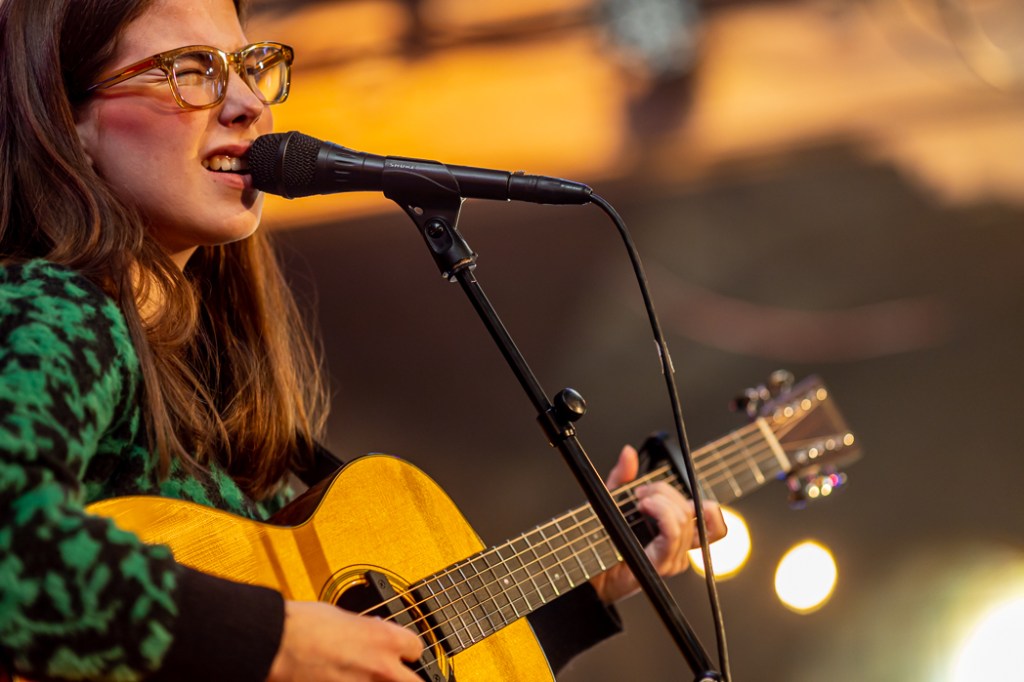Even later is het op hetzelfde podium de beurt aan Arny Margret, een piepjonge singer-songwriter uit IJsland, die de kunst van finger picking verstaat. Daarmee rolt zij een hoogpolig tapijt uit om haar fluwelen stem op te laten landen. Dat zij slechts twintig jaar oud is, zou je niet zeggen wanneer je met je ogen dicht aandachtig luistert. Die aandacht dwingt ze ongekunsteld af en hoewel ik geen werk van haar kende, neemt ze me eenvoudig aan de hand en toont mij het leven in en het landschap van IJsland.