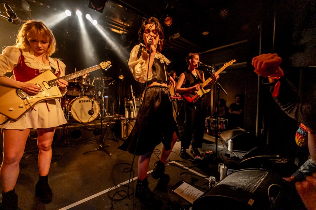 Ontdekken lijkt vandaag een thema. The Last Dinner Party is een gevalletje top of flop. Het is hoe dan ook een gok, want de Londense band heeft nog geen muziek uitgebracht. Het doet me denken aan de tijd voor het internet, dat ik naar aanleiding van mond-tot-mondreclame kaartjes voor een gig kocht. Met een beetje geluk kon je via via een cassettebandje regelen, een thuisopname van iemand die wel een lp had van de band in kwestie, of een kopie van een kopie. Maar niets van dit alles nu, het enige wat aan die tijd herinnert zijn de tapes met de ep van Smudged, die onbeheerd op een tafel liggen op een A4-tje met een QR-code. Met nog vijf minuten te gaan voor aanvang van het optreden is Rotown minder vol dan je zou verwachten op grond van de buzz die rond deze band die dus nog geen nummer heeft uitgebracht maar wel in het voorprogramma van The Rolling Stones in Hyde Park stond. Is het MoMo-publiek dan toch minder avontuurlijk dan de festivaldirectie denkt? Al is dit wellicht flauw om op te merken, want er valt zowel op muzikaal als op ander cultureel vlak natuurlijk hartstikke veel te ontdekken en je kunt nu eenmaal niet overal tegelijk zijn.
