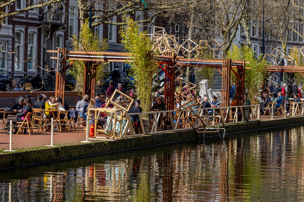 Ik dwaal via de Playground wat rond. Ik kijk mensen, ik spreek mensen. Festivalbezoekers zijn doorgaans gemakkelijk te herkennen aan hun polsbandje, maar door de frisse wind gaat dat veelal schuil onder lange mouwen. Het leven in de stad gaat gewoon door, dus ik kom ook mensen tegen die het festival niet bezoeken en in de Witte de Withstraat loop ik Buck Meek, gitarist bij Big Thief tegen het lijf. Star struck kom ik niet verder dan “hi, hope to see you tonight,” en ik weet niet eens zeker of hij het hoorde, want hij leek behoorlijk in zijn eigen wereld.