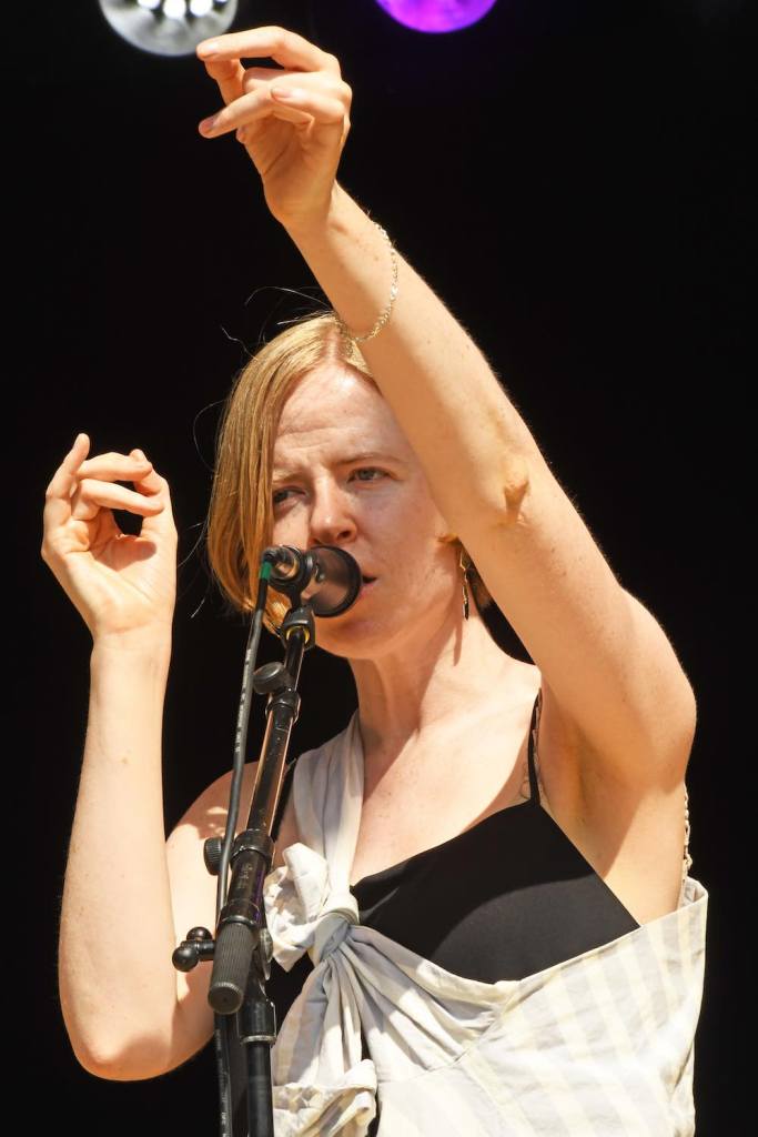 De Lowlands-website verwoordt het prachtig. Het nieuwe album van Amber Arcades is binnen de indie muziek een meesterwerkje. Een album waarop ‘barokpop, shoegaze en triphop gracieus om De Graafs engelenzang heen cirkelen’. Vanmiddag in de openlucht blijft de barokcomponent misschien wat op de achtergrond, maar verder maakt Amber Arcades deze omschrijving volledig waar. Zes nummers van het nieuwe album, drie nummers van debuutalbum Fading Lines dat in 2016 werd uitgebracht en It Changes van de EP Cannonball uit 2017. Het album European Heartbreak uit 2018 schittert vandaag door afwezigheid