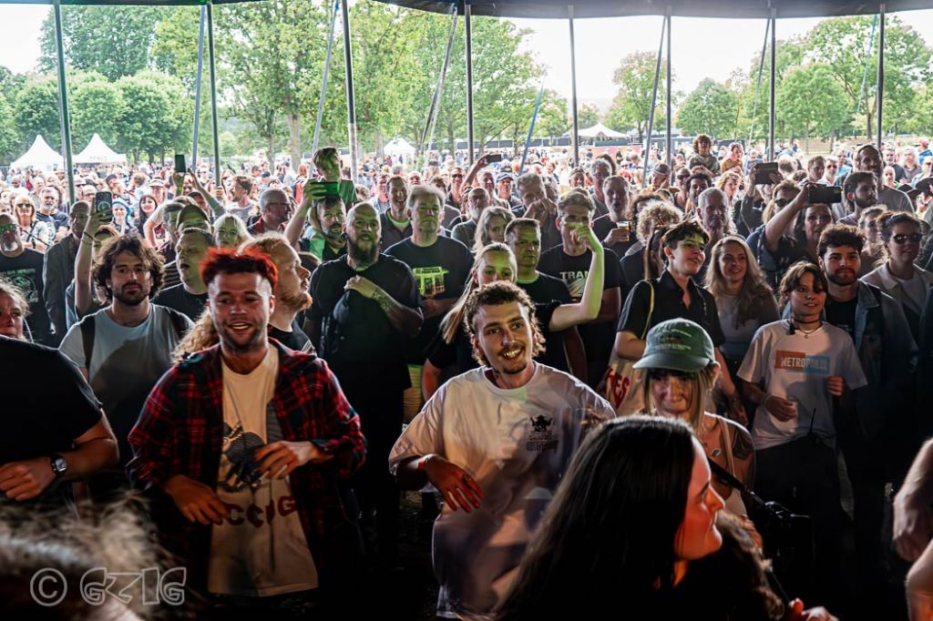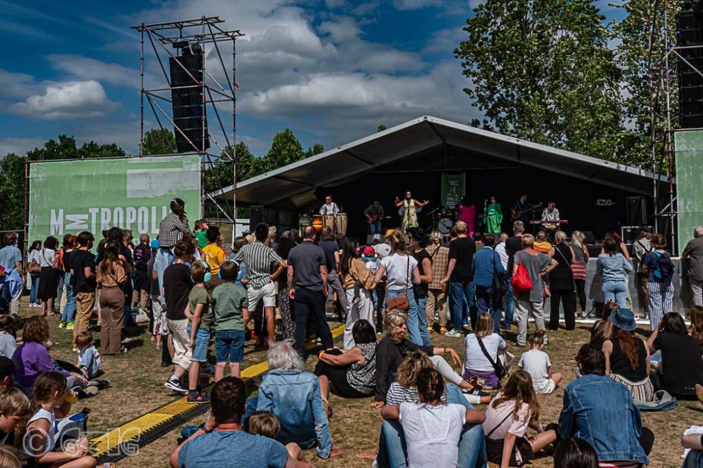 Na een lange dag maken we op het terras de balans op. In de mix van genres is dit jaar opnieuw een verschuiving geweest. Wat misschien vooral ook gevoeld gaat worden door de ‘bandjescultuur’ in de regio, waar de plek om zich aan een groter publiek te kunnen presenteren nu wordt gedeeld met heel veel collega-artiesten die actief zijn in andere genres: meer concurrentie, minder kans. Wij misten dit jaar het rennen van podium naar podium om maar niets te missen van wellicht ‘the next big thing‘. Dat maakt Metropolis 2023 tot een relaxt festival waar vooral ook tijd is om met iedereen een praatje te maken. Want ook deze editie voelde het weer als een reünie met iedereen die met regelmaat naar muziek gaat luisteren ergens in de stad of zelf muziek maakt. Die menigte die er altijd als was, staat nu ook weer op het veld, een enkeling uitgezonderd die verkiest thuis of elders te mokken. En verdomd, we zien ook een enkele nieuwe act waarvan we dan nu gaan afwachten of die in de toekomst net als in het verleden ineens heel groot blijkt te worden. De ‘James Brown van Ghana’ – Gyedu-Blay Ambolley – is dat al, en die mochten we nu eens met eigen ogen zien terwijl we in het zonnetje genoten van zijn onvervalste afrofunk. Ook onvergetelijk.
