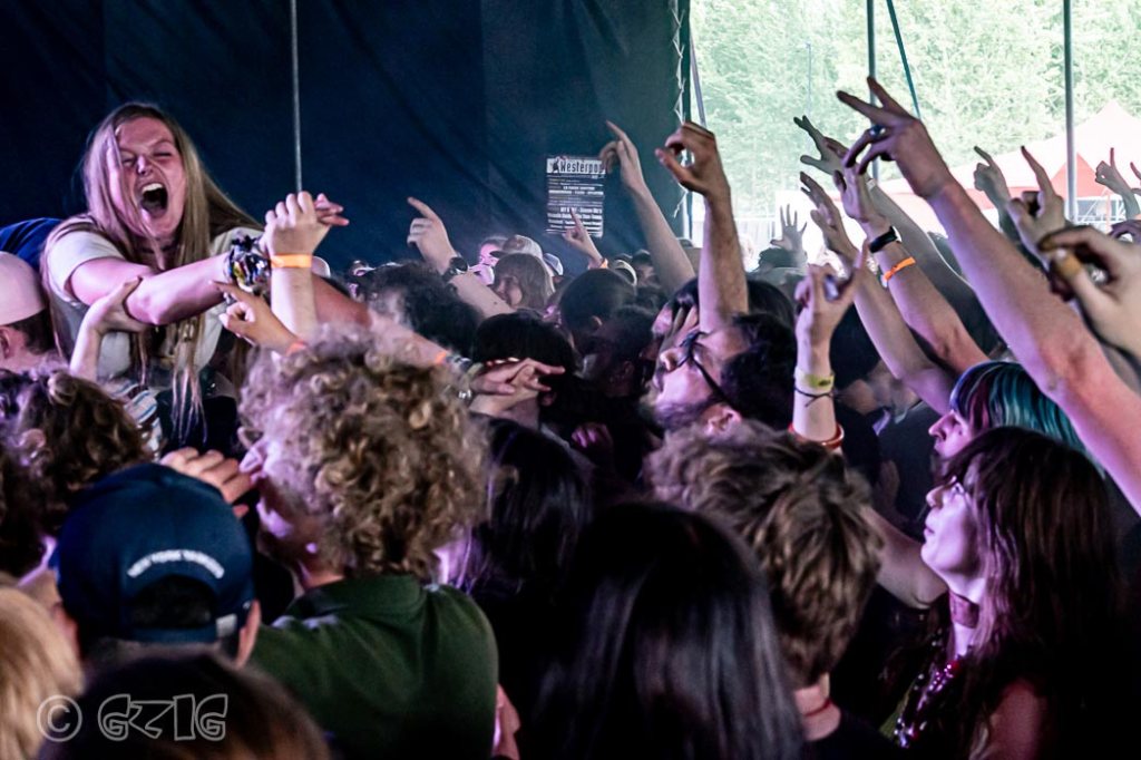 Metropolis sluit op het hoofdpodium af met op papier twee knallers: Pup uit Canada en Militarie Gun uit Los Angeles. Ook Pup is zo’n pure festivalband die met hun Down By Law-achtige punkpop het publiek al snel op z’n hand heeft. Bovendien staat de tent dit keer vol met fans, die nummers als DVP enthousiast meezingen. En helemaal los gaan ze als zanger Stefan Babcock een liedje inzet voor zijn band, die immers zijn allerbeste vrienden zijn: If This Tour Doesn’t Kill You, I Will. De uptempo liedjes vol humor blinken uit in aanstekelijke refreintjes met melodieën die uitnodigen tot meebrullen. Bovendien is de samenzang van de bandleden goed verzorgd. De handjes gaan massaal omhoog in de dit keer goed gevulde tent. Hartstikke leuk.