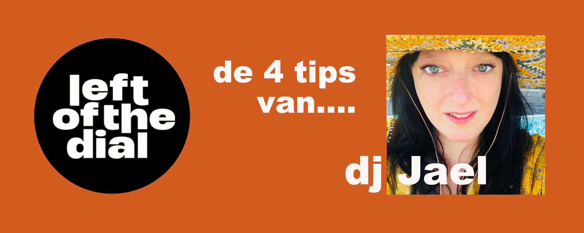 Nog maar een paar nachtjes slapen en dan barst het festival Left of the Dial los in Rotterdam. Daar hebben we net als jullie heel veel zin in. Het is intussen wel een klus aan het worden om te bedenken welke bands je in elk geval niet wilt missen. Tenzij je gewoon maar wat gaat rondlopen en je laat verrassen. Maar voor de wijfelende planners onder ons brengt MuziScene de komende dagen weer tips van kenners, met het doel je verwarring nog groter te maken. We starten vandaag met de dj waar we allemaal wel eens op hebben lopen te lopen dansen: Jael Snijder, die kan je erbij hebben op je feestje, dj met een ongeëvenaarde kennis, dj met een dansvloerintuïtie die geen gelijke kent, én bekend van onder andere Kiss All Hipsters. Haar vier tips zijn: