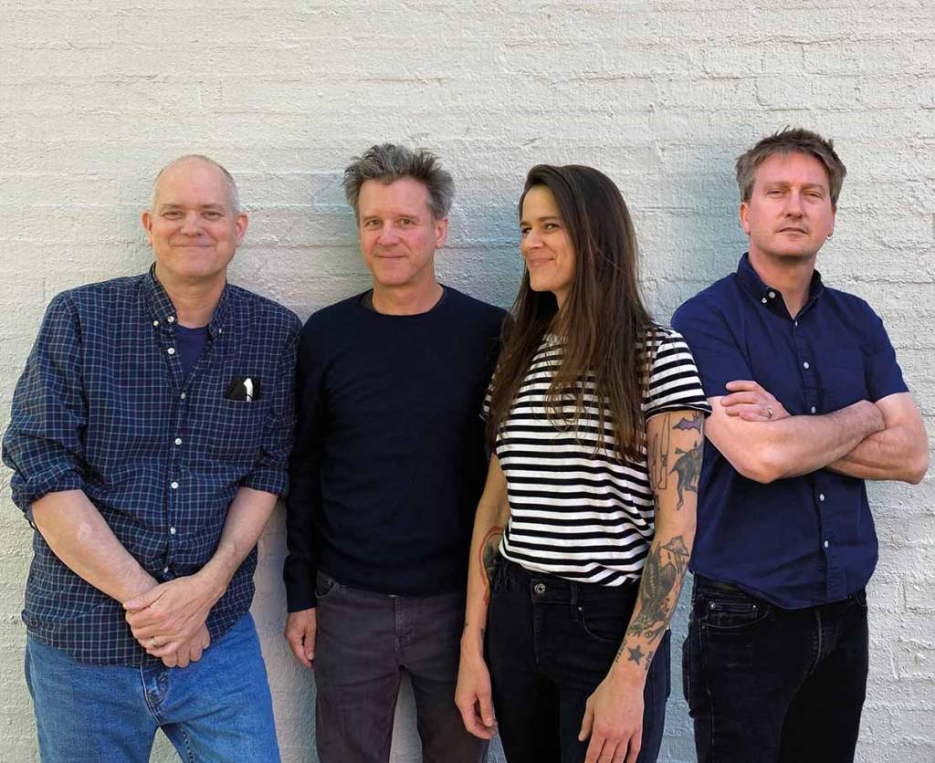 Op de foto de bezetting van Superchunk tijdens de EU-tour in 2023 met vlnr Betsy Wright, Jim Wilbur, Mac McCaughan en Laura King.