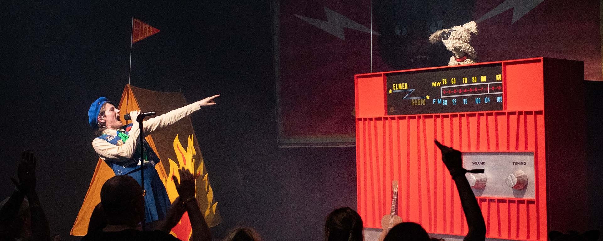 We mijden de grote zaal waar Deadletter weer eens een keer de boel plat speelt. Maar dat hebben we al eens meegemaakt. En dus staan we, ons voornemen invullend met open mind ook eens te gaan kijken naar dingen die we normaal niet zien, tussen een heel ander deel van het publiek om het Neerlands fenomeen Elmer te zien. Een theatershow, daar lijkt het zo’n beetje op. Met op het podium een tentje en een dj-booth waar hartveroverend dj Skipper aan het werk is. Poppenspel van de bovenste plank, een toevoeging aan de visueel sterke show van Elmer. En voor de oplettende toeschouwer was er ook recht tegenover het podium een mooi schouwspel te zien: daar wordt de techniek voor de show door een lid van het team van Elmer aangestuurd en dat gebeurt al dansend en meezingend met evenveel passie als de artiest zelf. Met al het dansen en hossen lijkt het enkel feest, maar bij Elmer gaat het ook ergens over en is er nog een laag in het werk te ontdekken. Je zal recent maar een familielid hebben verloren, sta je daar toch met een steen in je maag te luisteren naar de stiekem indringende boodschappen van Merel Pauw. De afwisseling tussen ontroering, niets verbloemende openhartige teksten die aansluiten bij de belevingswereld van adolescenten en gewoon feesten spreekt het stukken jongere publiek dan we eerder op de avond troffen overduidelijk erg aan. En ook al is de backingtrack met vette beats niet je ding, kun je niet om de conclusie heen dat Elmer een uitstekende show neerzet.