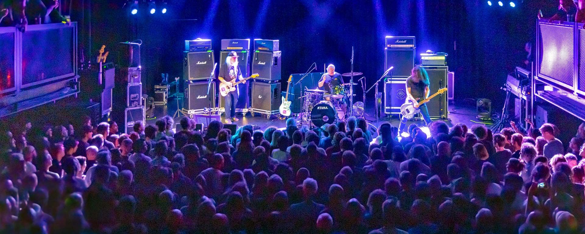 Liefhebbers hebben vast allemaal de documentaire Freakscene, the story of Dinosaur Jr gezien en er is al veel geschreven en veel gezegd over de onderlinge relaties. Vanavond staat een band op het podium van Paard die al veertig jaar diepe onuitwisbare krassen zet in de muziekgeschiedenis. Een trio met uitzonderlijke persoonlijkheden die het nu ook niet altijd even goed met elkaar hebben kunnen vinden. En dus gonst het in de zaal van Paard als we de band in zicht krijgen, en wordt vrolijk geïnterpreteerd wat we denken te zien: twee muzikanten die met de ruggen naar elkaar staan, maar wel een hecht en geroutineerd collectief vormt.