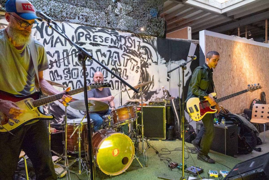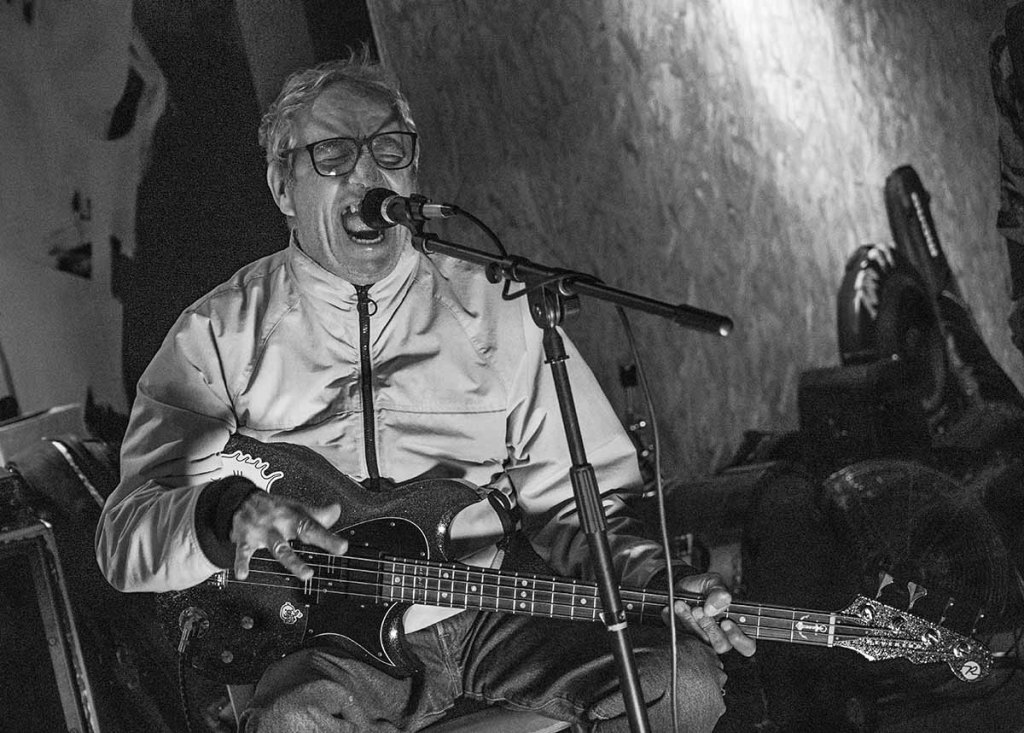 Hij oogt fragiel, als Mike Watt geholpen door omstanders moeizaam lopend met een kruk het podium op wordt geholpen. Spelen doet hij zittend. En als hij probeert op te staan om applaus in ontvangst te nemen, lukt dat niet niet onmiddellijk. Mike Watt, levende legende – The Stooges, Minutemen, Firehose – en vanavond speelt hij in DS’17, een klein atelier aan de rand van Dordrecht, met Il Sogno Del Marinaio (vrij vertaald ‘de droom van een matroos’), een trio met de Italiaanse avant garde muzikanten Stefano Pilla (gitaar) en Paolo Mongardi (drums).