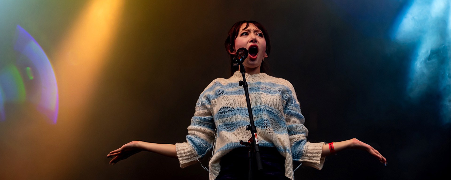 Metropolis 2024 telt op voorhand al een paar hoogtepuntjes, ook voor liefhebbers van alternatieve muziekstromingen waaronder vorig jaar zorgen groeiden over de richting waarin de programmering zich leek te bewegen. Maar dit jaar is er op papier al genoeg om de reis naar zuid te aanvaarden, ook in de zeikregen. Kijk maar, al die die-hard concertbezoekers die je in de stad tegenkomt, die staan er gewoon weer. Evenals liefhebbers van andere genres; het lijkt wel een echte Rotterdamse smeltkroes. En zij worden allemaal beloond als tegen het einde van de middag de geseling even stopt en een zonnetje doorbreekt. Zij zijn gekomen voor bijvoorbeeld Deadletter, dat de stad Rotterdam intussen zo’n beetje op zijn duimpje kent en na het festival neerstrijkt in thuisbasis Rotown. De liefdesbaby van Left of the Dial zien we voor de tigste keer in de stad, maar levert weer waar ze bekend om staan: vaak groovende indierock/postpunk maar vooral een uitstekende energieke live-show. Die dan toch nog net weer wordt overtroffen door Iers Sprints. Karla Chubb kreeg kort voor haar aantreden backstage nog een ontspannende massage, maar die had duidelijk enkel energie gegeven. De roodharige blikvanger van de band sluit aan bij de rij artiesten met een boodschap dat eenieder moet kunnen zijn wat ‘ie is en geeft net als Delilah Bon met een cover van Le Tigre’s Deceptacon een eerbetoon aan het riot grrrl-genre.