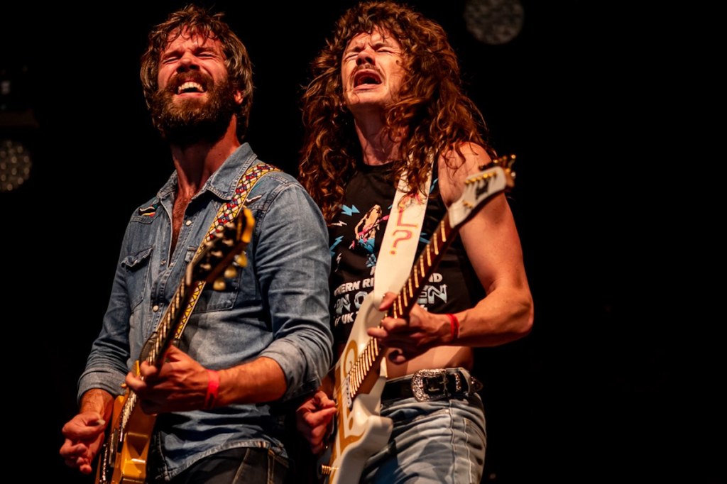 Alle in leren jackjes gehulde gasten verschijnen ineens voor het podium bij Belgisch Meltheads en laven zich aan het lefgozertje Sietse Willems die de band leidt en alles lijkt te kunnen: schitteren op gitaar, dan brullend als een bronstig paard en indrukwekkende poses aannemend, en dan weer heel even op sax. Deze groep toeschouwers kan daarna direct door naar The Southern River Band die, een Australische band waardig, op kundige wijze de ACDC-traditie uitdraagt.