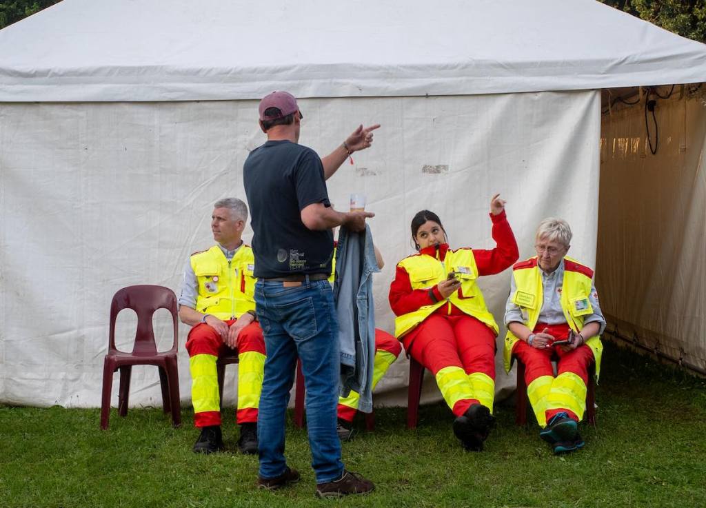 Troef van Absolutely Free Festival is behalve het prima programma de ontspannen sfeer. Mensen komen er voor de muziek en hebben er met respect voor de muzikanten en elkaar alle aandacht voor; geen ‘Dutch disease‘ hier. Maar ook nauwelijks mensen die enkel voor het feest komen; het voelt als een samenkomst van eensgezinden. En als het al meer draait om de gezelligheid en de ontmoeting, dan gebeurt dat op eilanden met zitgelegenheid. Ik ontmoet veel bezoekers die er al jaren komen. Ik spreek er mensen uit Nederland, Duitsland en natuurlijk België die allemaal trots vertellen hoeveel jaren zij het festival al aandoen.