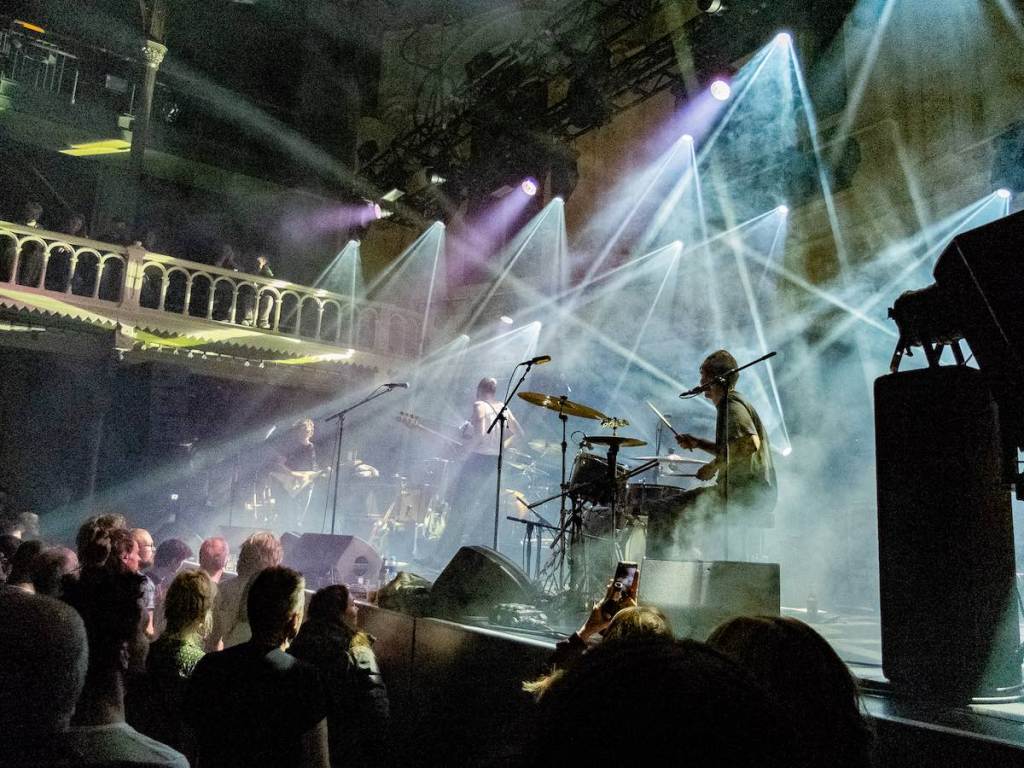Terwijl Tramhaus gestaag opbouwt naar een crescendo, kijkt gitarist Micha Zaat kijkt de zaal in, zijn ogen dwalen eerst naar de volle balkons om ze dan te sluiten. Het is alsof je hem ziet denken ‘zuig het op, ervaar het moment’. Tramhaus schrijft in Paradiso Rotterdamse popgeschiedenis, samen met hun vrienden van Texoprint en Neighbours Burning Neighbours. En opvallend is hoe zeer alle drie de bands zich als een vis in het water voelen, in Neerlands meest fameuze poptempel die vanavond op een haar na volledig is uitverkocht.