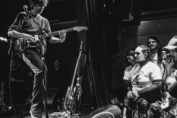 Toegegeven, hoe Nouveau Vélo zich live presenteert is niet doorsnee. Maar het gaat misschien wat ver om ze ‘eigenaardig’ te noemen omwille van de plek die ‘drummer’ Rolf Hupkes op het podium inneemt. Hij staat middenvoor, achter een snare en een floor tom met een dikke theedoek er overheen zodat een klap erop dof en afgebeten klinkt, net als een bassdrum. Hupkes zingt er bij en heeft nu ook een drumcomputer en een keyboard naast zich staan. Die drumcomputer speelt een belangrijke rol op Fruit en is nieuw in het geluid van de gitaarband die vaak in één adem wordt genoemd met The Feelies, REM en Real Estate. Het nieuwe album heeft met name een sfeer die doet denken aan de laatst genoemde; zacht, melodieus, mooi. Van het concert in Rotown spetteren de vonken daarom niet af, maar ligt de focus op de luisterliedjes. De Brabanders komen live directer voor de dag dan op de plaat. Niet alleen omdat de laag reverb ontbreekt, ook omdat de gelaagd opgenomen liedjes meer sober worden uitgevoerd met in principe maar drie instrumenten.