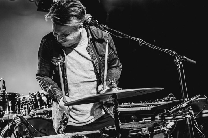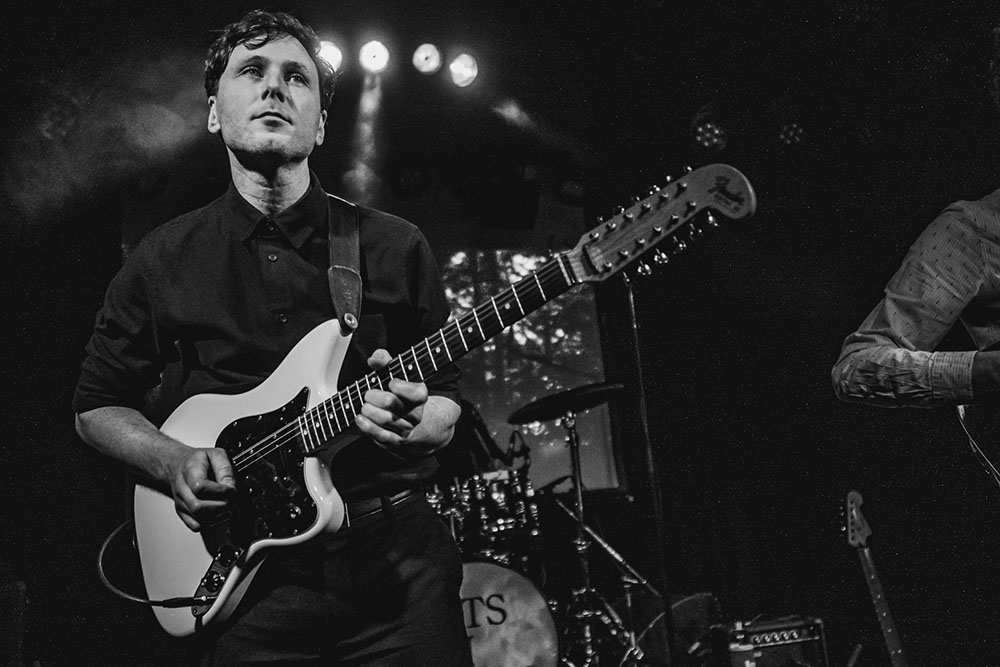 Eenmaal op het podium, na een wat rommelige soundcheck, draait de band als een gesmeerde machine. Leenders – een begenadigd gitarist – gaat volledig op in zijn expressieve spel en is daarom mooi om bezig te zien. Hupkes zingt prachtig zuiver en zijn handen vinden ogenschijnlijk moeiteloos hun weg langs de drums, toetsen en knoppen. Bassist Haverkort speelt accuraat en in volle concentratie. Live is er veel dynamiek, met name in de meer experimentele nummers wordt het volume mooi opgeschroefd. De drie krijgen met hun liedjes de gestaag volstromende zaal stil. Zelfs ‘Team Arnoud’ kijkt zwijgend toe en luistert vol aandacht.