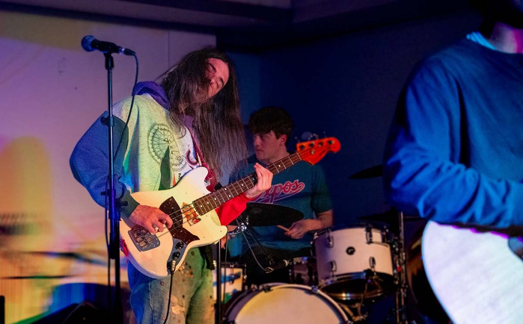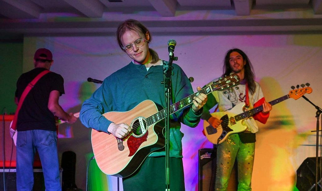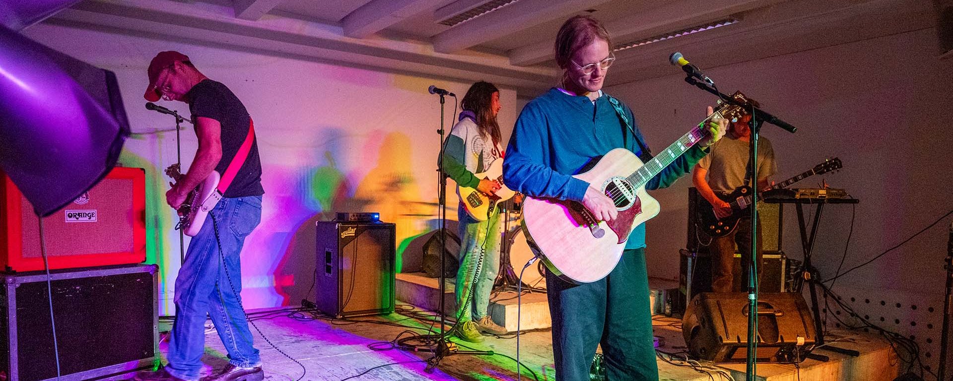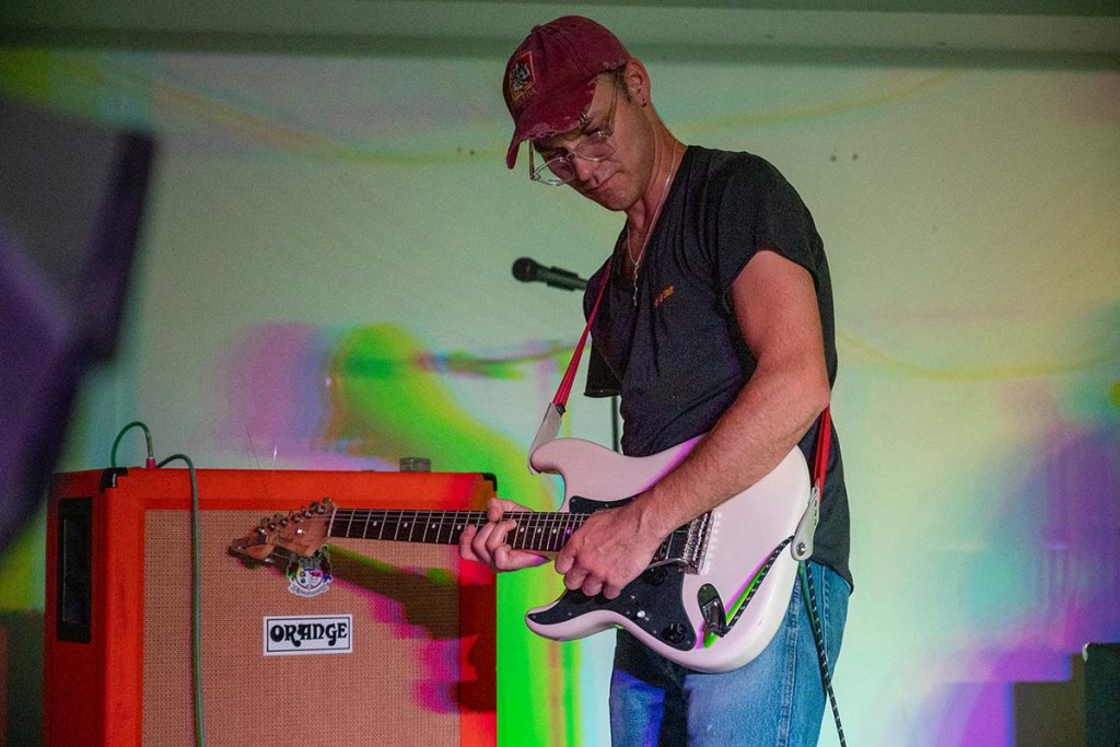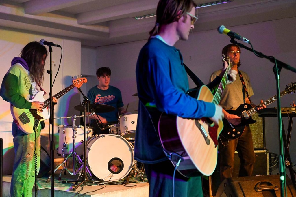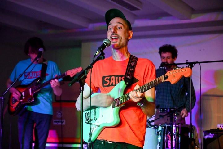 ‘Jullie gaan verwend worden’, zegt zanger-gitarist van Naive Set Mikey Casalaina verwachtingsvol tegen de enkele tientallen die het podium Mono hebben weten te vinden, verwijzend naar de band uit Canadees Nova Scotia voor wie ze vanavond opwarmen. En hij kan het weten, want hij heeft ze recent nog gezien. Casalaina speelt met zijn band – die je toch al jaren mag rekenen tot de top van de jangle pop in ons land – een set met een mengeling van nieuw en oud werk. In het najaar van 2024 verscheen hun nieuwste album In Air Quotes waarmee de groep een stapje zette naar net iets minder lo-fi klinkende en net iets toegankelijker werk. Van dat album komt bijvoorbeeld American Flag langs; een pakkende song op een aanstekelijk huppelend ritme. Maar evengoed speelt Naive Set Dieter Ram’s Wife van Dragon uit 2015, een rustig liedje met als meest in het oog springend element een Duitstalige tekst. Casalaina vertelt glunderend dat hij heeft ontdekt dat hij bij een nummer helemaal geen capo nodig heeft. Het is even wennen om het zonder te spelen, maar het lukt. Zijn bandleden grappen dat het een mooi onderwerp kan zijn voor een vlog. Check die maar eens op Insta. Daarin vertelt de zanger-gitarist heel beeldend en helder over zijn muziek. Bijvoorbeeld wat jangle pop nu precies kenmerkt. Het mag bijvoorbeeld een beetje rammelen, wat Naive Set op deze maandagavond ook precies goed, zoals het hoort, doet.