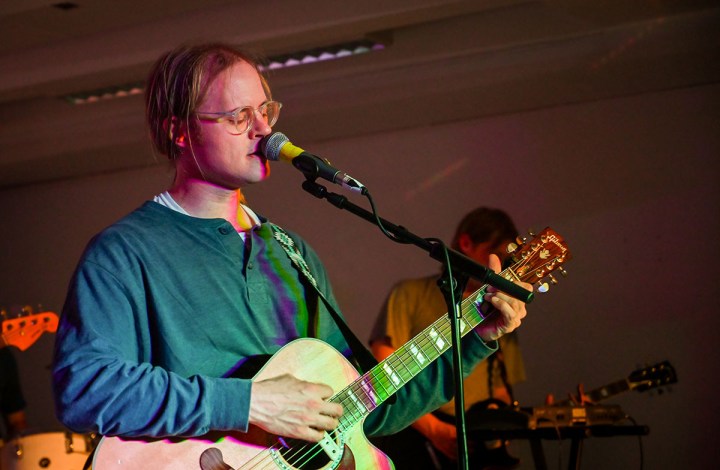 Zo ontspannen als de Amsterdammers op het podium van Mono staan, zo bescheiden, bijna verlegen, presenteert Nigel Chapman, de zanger-gitarist van Nap Eyes zich. Als hij zijn toehoorders in de zaal iets wil vertellen, verzand het steeds weer in gegeneerd gegrinnik. Niets van die onbeholpenheid is te bespeuren als het vijftal hun beeldschone gitaarpop speelt. Met drums, bas, drie gitaren waarvan er een af en toe ingewisseld wordt voor een toetseninstrument, tovert de Canadese groep een sound vol prachtige nuances. En Mono mag er dan uitzien als een geïmproviseerd houtje-touwtje podium, maar die sound komt in dit zaaltje meer dan voortreffelijk tot zijn recht.
