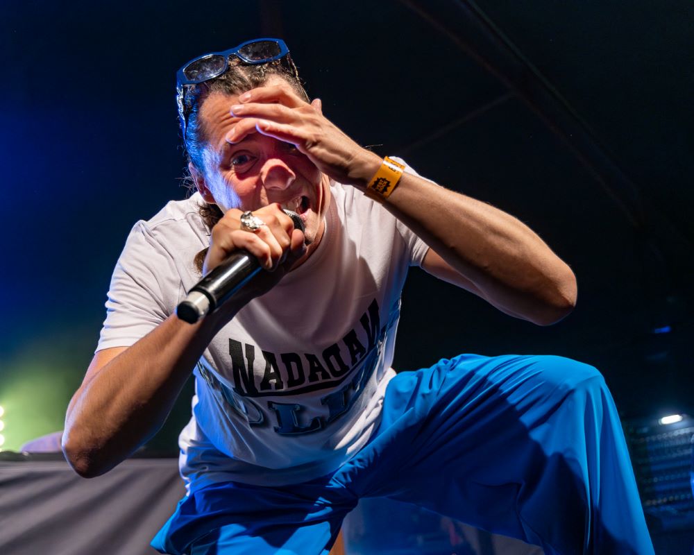 Maar voor het zover is, wandel ik eerst nog even naar De Kraaien. Het is de eerste keer vandaag dat ik de Nexus stage, formerly known as De Tent, bezoek. Dat ik er wederom een Belgische act voor laat schieten – Chibi Ibigo, die gelijktijdig op de Nexus staat, zag ik ooit al op Into The Great Wide Open – maakt dat ik de schijn tegen heb als ik beweer dat ik dol ben op Belgische bands, maar dat zij dan zo. Sinds ik eind 2023 het album 11:11 van De Kraaien recenseerde, nam ik mij voor om deze Haagse rapformatie ooit eens live te checken. Dank Vestrock, voor het laten uitkomen van een van de dromen van deze rockopa. Dat ze reeds voor de derde keer op Vestrock staan, parkeer ik even naast de plaat voor mijn kop, laat mij ook eens blij zijn.