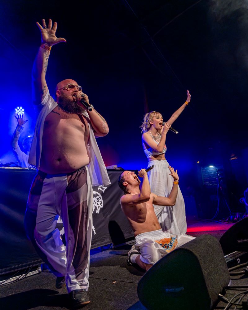 Ik pak mijn stuitermodus weer op bij De Plaag. Dat is het nieuwe project van Sjoerd van Lee (Scotch The Band), Juno Rissema (Het Gezelschap, Nachtburgemeester en ex-stadsdichter van Dordrecht) en Yoni Bouma (Nova Novella). Met DJ Riri achter de knoppen, kan je de band die is genoemd naar een boek van de Franse schrijver Camus, vergelijken met ABBA, Rissema en Bouma trouwden onlangs en Van Lee en Riri zijn dat reeds 11 maanden. De dames en heren beginnen in kleurige sportkleding, maar gaandeweg verliezen zij steeds meer kledingstukken. Het is allemaal onderdeel van een goed uitgedachte show. Op vette beats komen nummers voorbij over Duitsers, lekkere dingen, bananen, een ouwe schooier en Annie MG Schmidt. We zijn dan pas op de helft, maar sommige dingen willen we niet weten, en dus rapt De Plaag, die begin dit jaar het album Voorspel uitbracht, over Wat Je Niet Weet en dat het je geen pijn kan doen. En hoewel het enthousiasme en plezier van het podium spat, ontkomt ook De Plaag niet aan een protestnummer. Er is tenslotte genoeg om je druk over te maken. Neem nou die supermarkt in Dordrecht waar ze geen gratis koffie meer hebben… Het mondt uit in een Doe Maarcover, want De Bom is natuurlijk ook weer rete relevant. Het nummer is in de versie van de Plaag ronduit explosief, temeer om dat het publiek de tekst wel kan dromen. Sorry, deze woordgrap is goedkoop, maar dat is het optreden van De Plaag absoluut niet. Die gasten geven écht alles, vullen elkaar perfect aan en gaan werkelijk als een wervelstorm te keer. En zelfs als de laatste kledingstukken uitgaan en het viertal slechts gehuld in wit ondergoed het podium onveilig maakt tijdens slotnummer Kater, blijft het om de muziek en de lijpe teksten draaien. Respect, De Plaag gaat tot het gaatje en sluit de eerste dag van Vestrock zeer memorabel af.