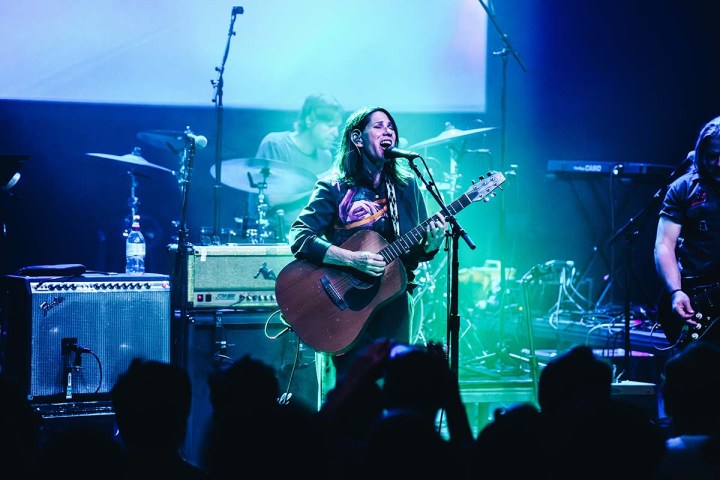 In je fantasie verwacht je op weg naar het concert Deal tegen te komen in een straatje achter het theater, geleund tegen een muur, sigaret in een mondhoek. In werkelijkheid zijn er de afgelopen jaren wat plooien gladgestreken. Hier staat een nette, goed geklede muzikant op het podium, die ver af lijkt te staan van het ongepolijste origineel waar zoveel oude grijze koppen in het publiek nostalgisch aan terugdenken. Je zag het al op de hoes van die soloplaat: alsof ze is geretoucheerd. Die oude versie van Kim Deal komt meer aan bod in het tweede deel van de goed anderhalf uur durende set. En het moet toch gezegd: dat oudere materiaal, onder andere van The Breeders, is toch net wat snediger en puntiger, heeft meer vuur in zich dan een groot deel van de liedjes van het soloalbum. Je schrikt weer wakker als Safari wordt ingezet, het is genieten van No Aloha. Al heeft Deal ook onder die naam tammer werk geproduceerd, zoals we vanavond horen met Drivin’ On 9, en ook andersom geldt: sololiedje Biker Gone pakt geweldig lekker uit dankzij die mooie krautachtige spanningsopbouw. Een deel van dat oude werk krijgt vanavond een nieuw arrangement waarbij de negen muzikanten rond Deal heen worden ingezet. Die Deal-Big Band geeft deze avond toch extra cachet.