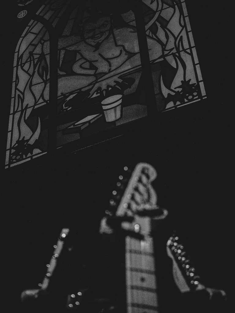 Na de soundcheck is er tijd om bij te komen, even in de kleedkamer te hangen en een fotoshoot te maken met bassist Tim Brown, die vanwege het ontbreken van Sice vandaag fungeert als woordvoerder van de band. Als de overige bandleden Amsterdam in gaan om ergens iets te eten, besluiten wij het nuttige met het aangename te verenigen en duiken met Brown een kroeg in vlakbij Bitterzoet.